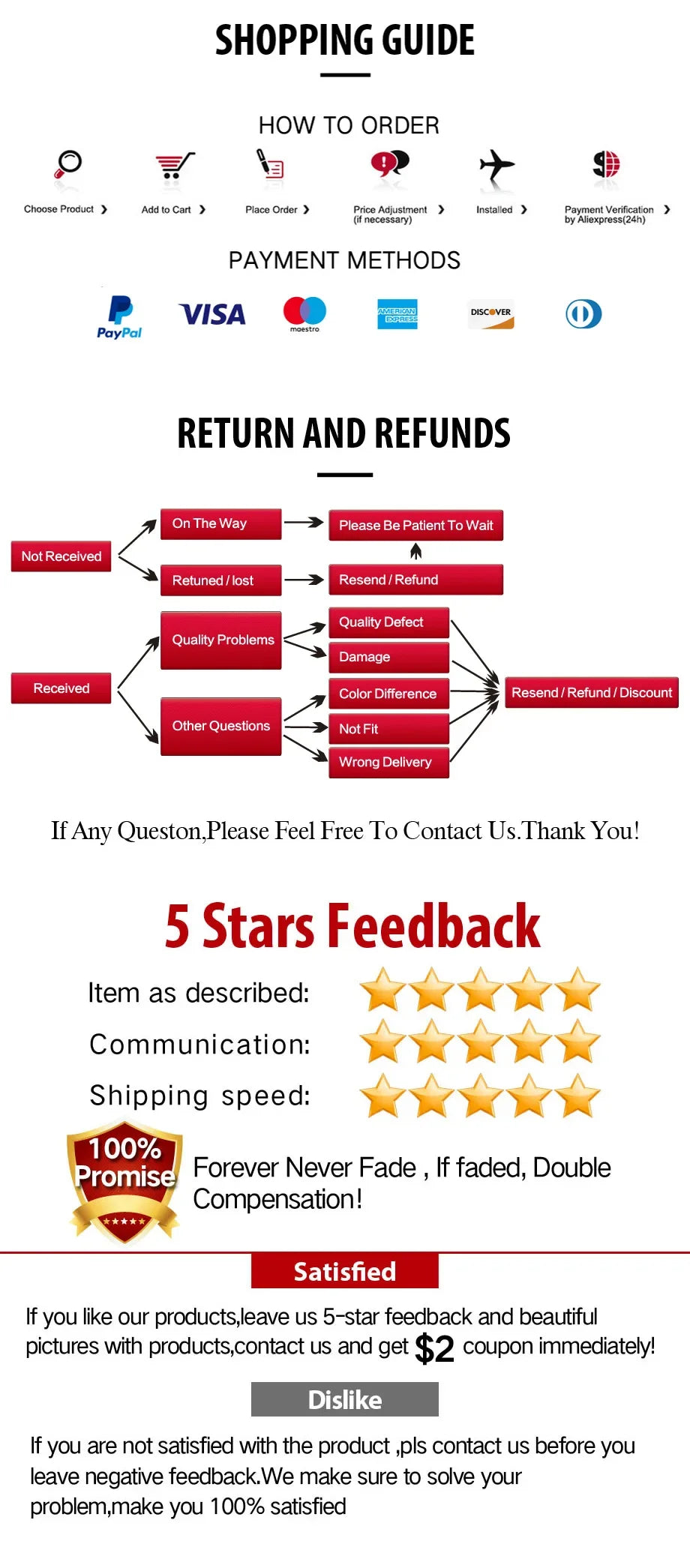 Q: What payment methods do you accept? A: We accept all major credit/debit cards, PayPal, and secure payment methods displayed at checkout.